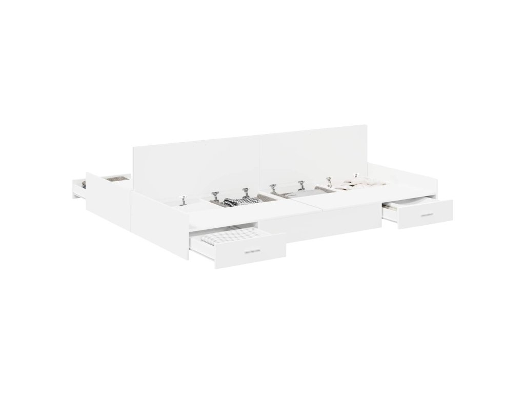- Komplexní úložná řešení: Postel má spoustu integrovaných zásuvek, což maximalizuje místo v ložnici. Tyto úložné boxy z inženýrského dřeva vám umožní pohodlně skladovat věci jako ložní prádlo nebo oblečení a udržet místnost v pořádku.