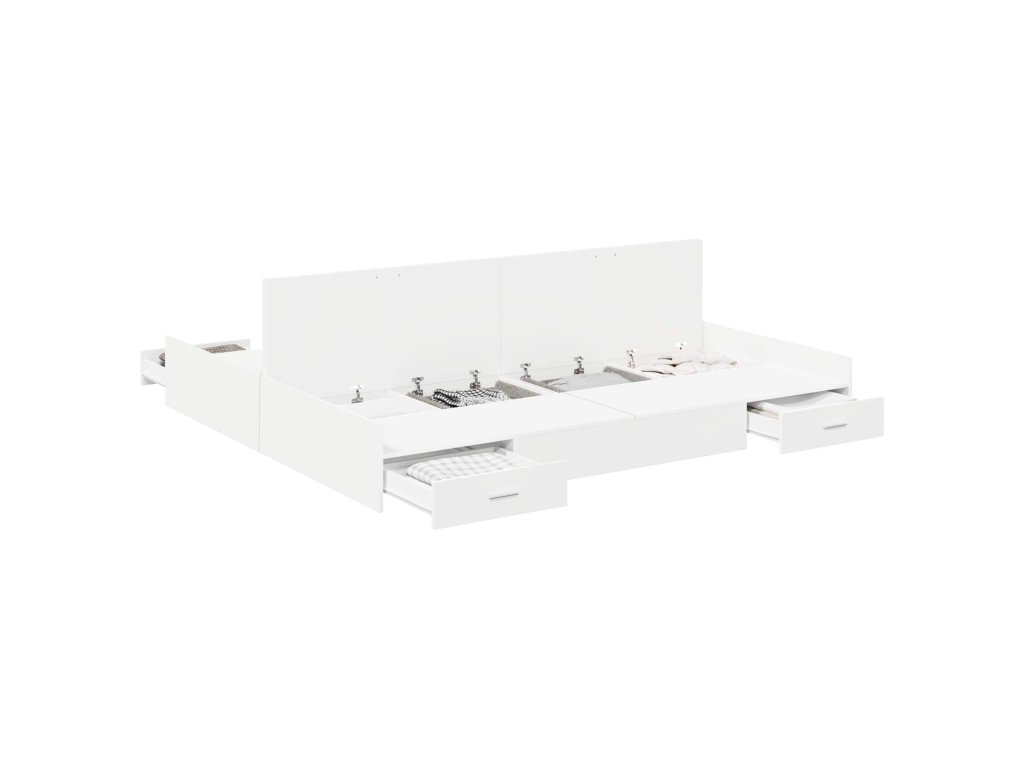 - Komplexní úložná řešení: Postel má spoustu integrovaných zásuvek, což maximalizuje místo v ložnici. Tyto úložné boxy z inženýrského dřeva vám umožní pohodlně skladovat věci jako ložní prádlo nebo oblečení a udržet místnost v pořádku.