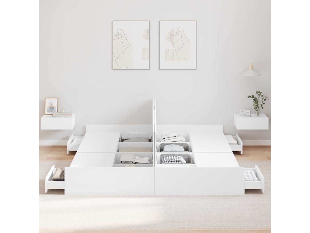 - Komplexní úložná řešení: Postel má spoustu integrovaných zásuvek, což maximalizuje místo v ložnici. Tyto úložné boxy z inženýrského dřeva vám umožní pohodlně skladovat věci jako ložní prádlo nebo oblečení a udržet místnost v pořádku.