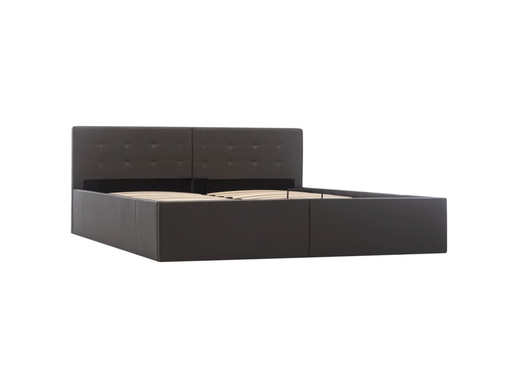 Zařiďte si ložnici v působivém moderním stylu s touto hydraulickou postelí z umělé kůže! Jedná se o manželskou postel, která vyniká svým jednoduchým, avšak stylovým designem a pevnou konstrukcí, je totiž vyrobená z pevné a robustní MDF.