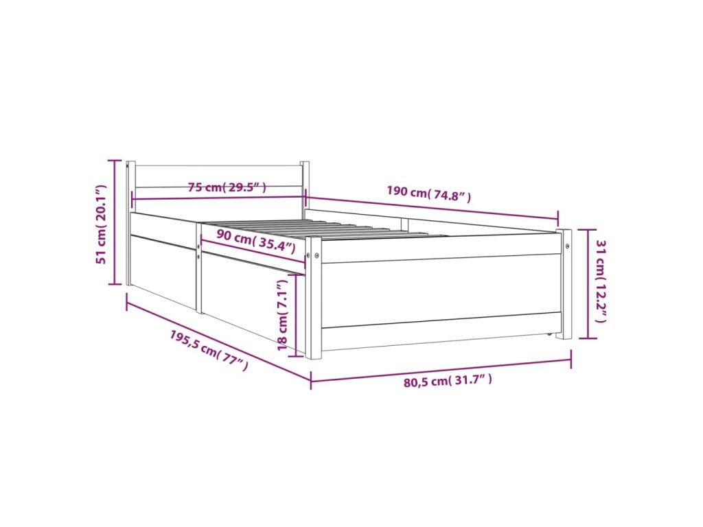 - Tento rám postele je vhodný pro matrace o rozměrech 75 x 190 cm (2FT6 Small Single)