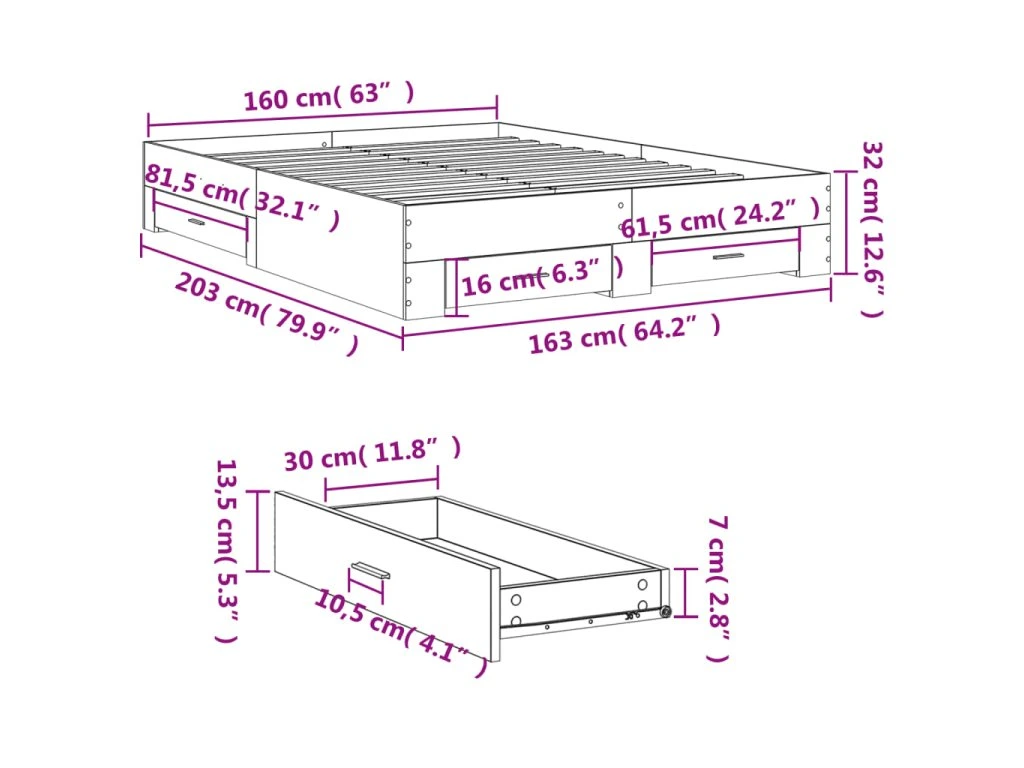 - Rozměry zásuvky postele (L): 81,5 x 31,5 x 13,5 cm (D x Š x V)