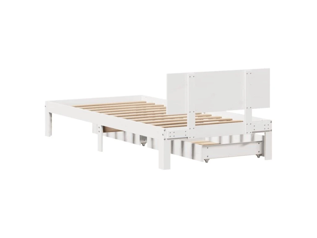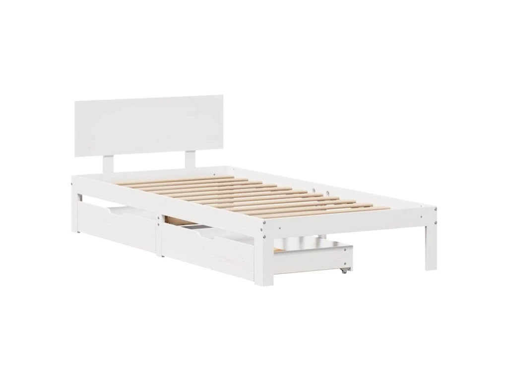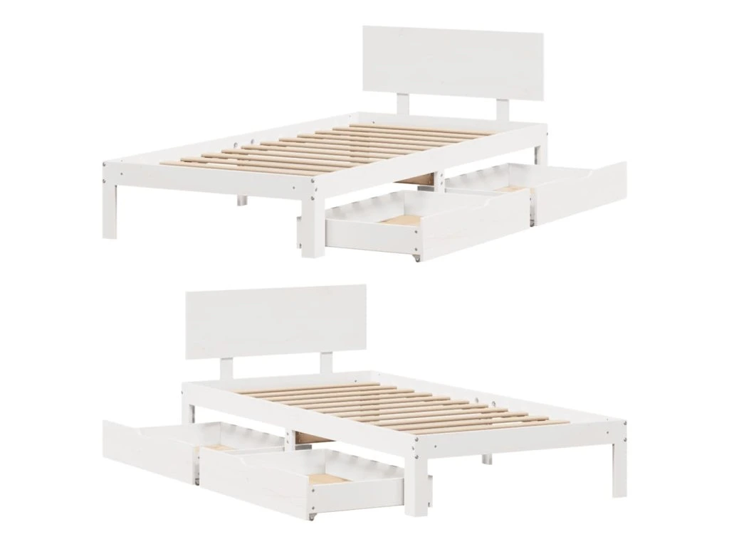 Rám postele se zásuvkami bílý 100 x 200 cm masivní borové dřevo 3301981