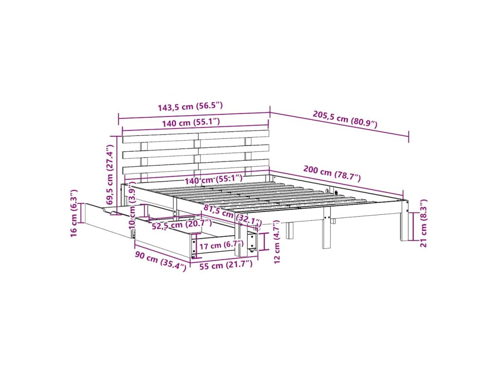 Rám postele se zásuvkami bílý 140 x 200 cm masivní borovice 3302011
