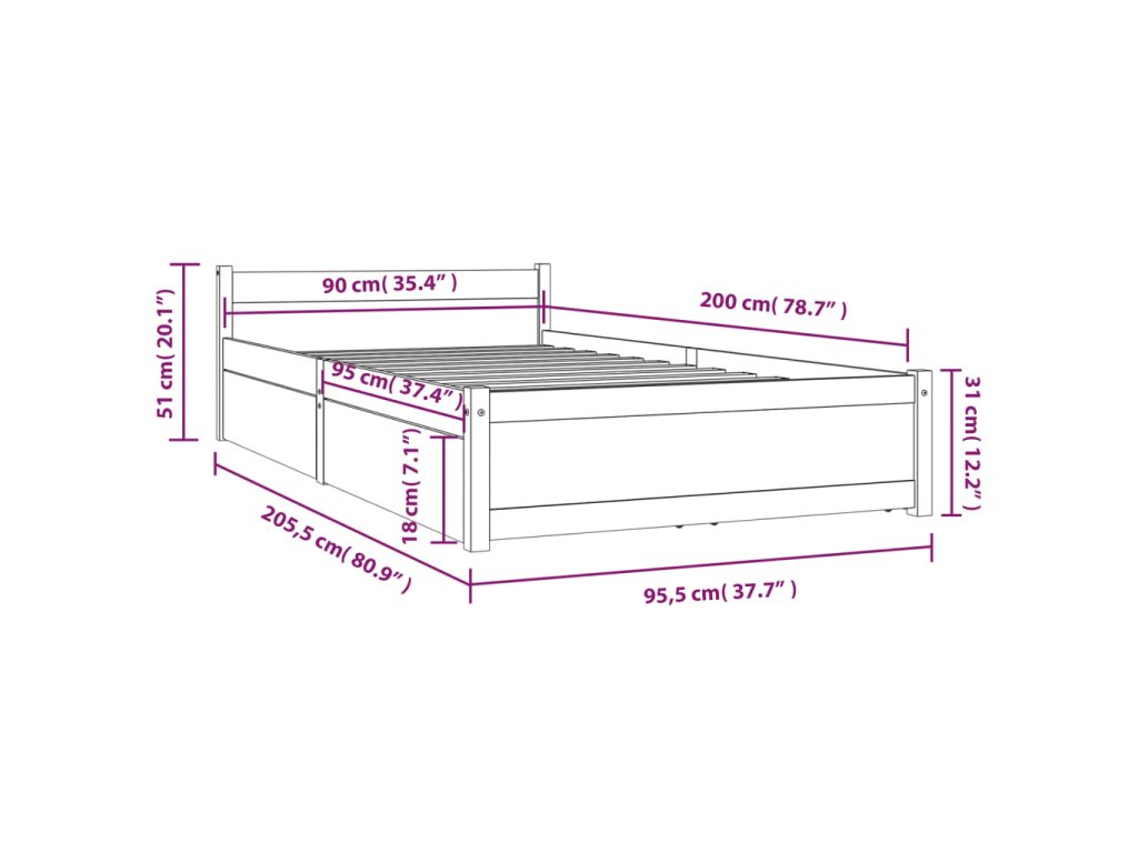 - Tento rám postele je vhodný pro matrace o rozměrech 90 x 200 cm.