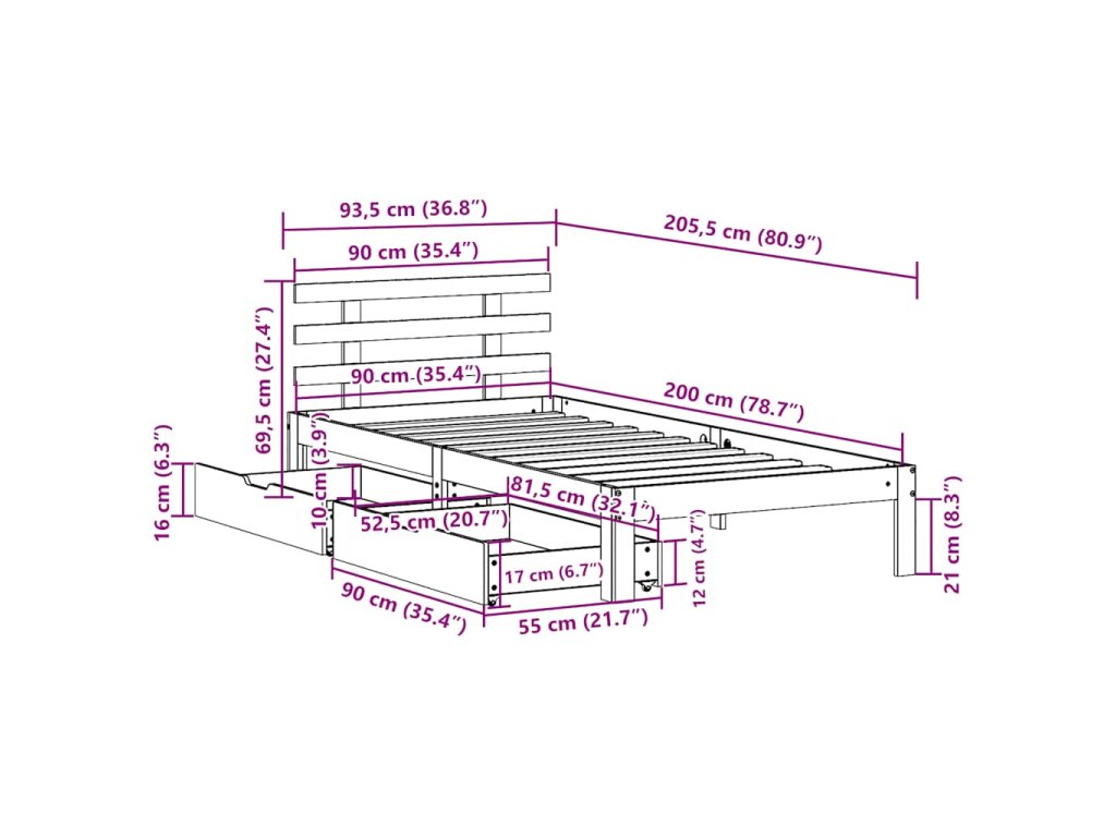 - Vhodné rozměry matrace: 90 x 200 cm (Š x D) (matrace není součástí balení)