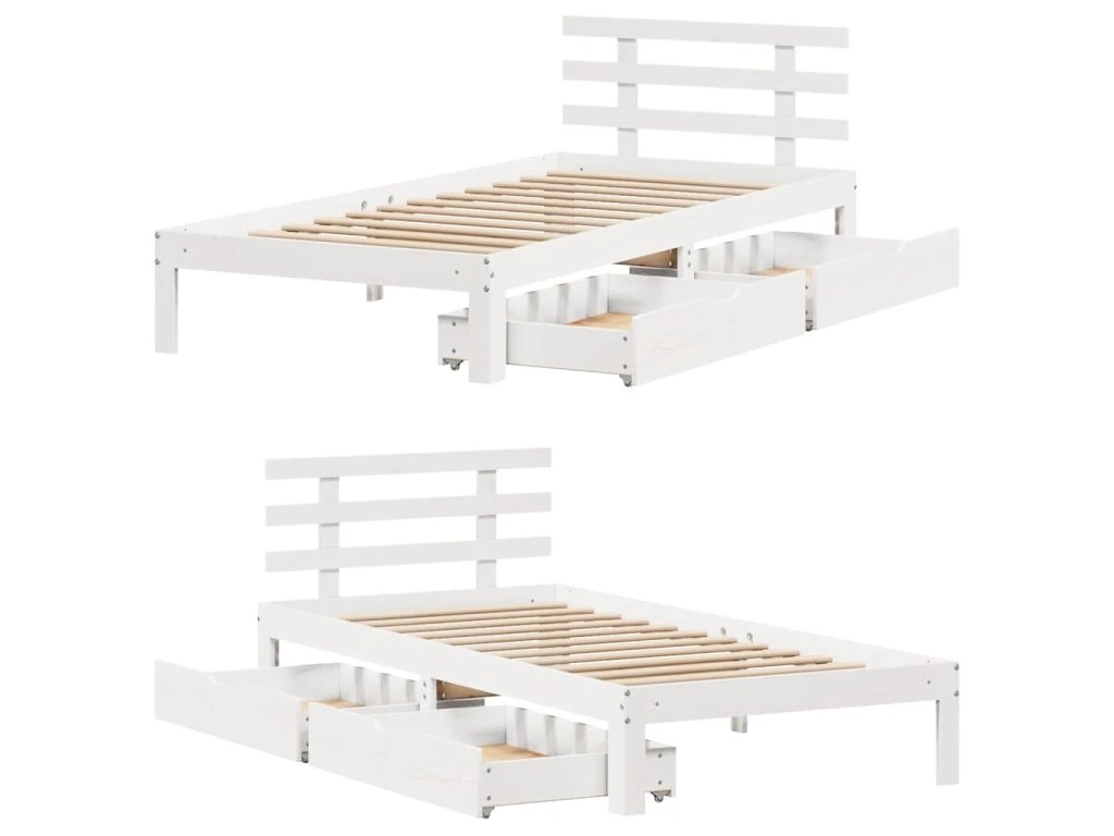 Rám postele se zásuvkami bílý 90 x 200 cm masivní borové dřevo 3302005