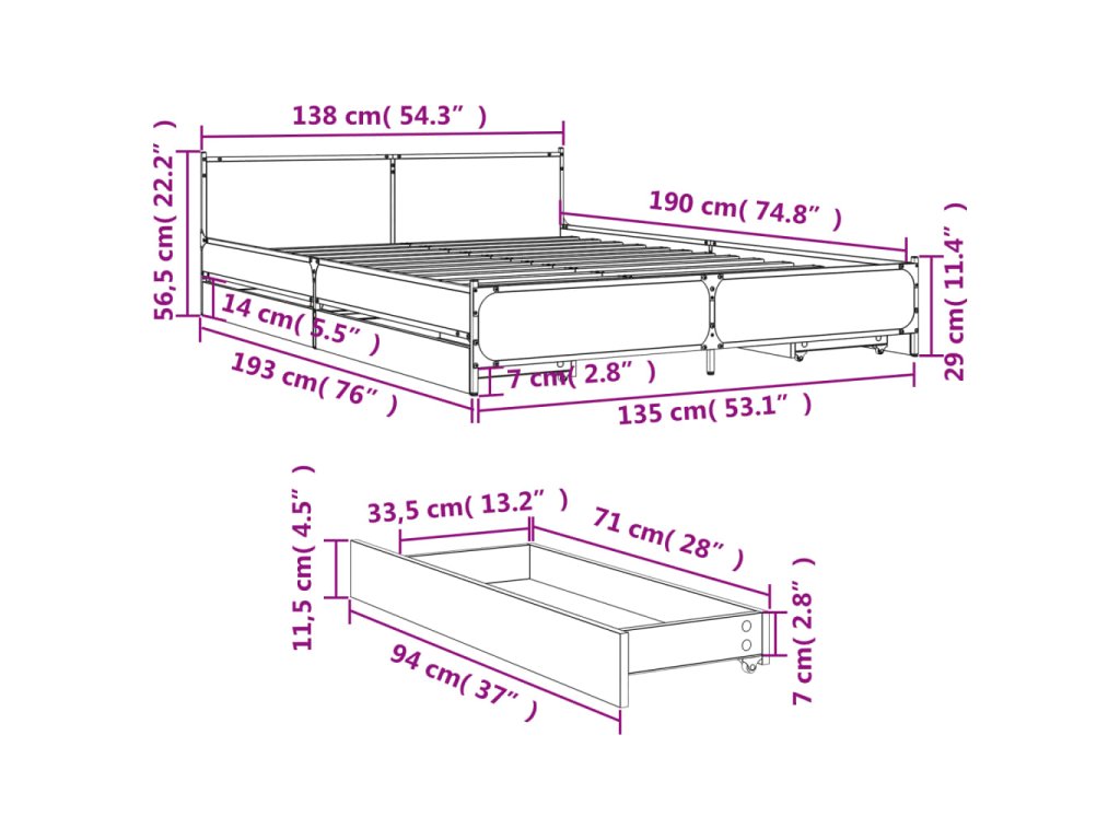 Rám postele se zásuvkami černý 135 x 190 cm kompozitní dřevo 3279947