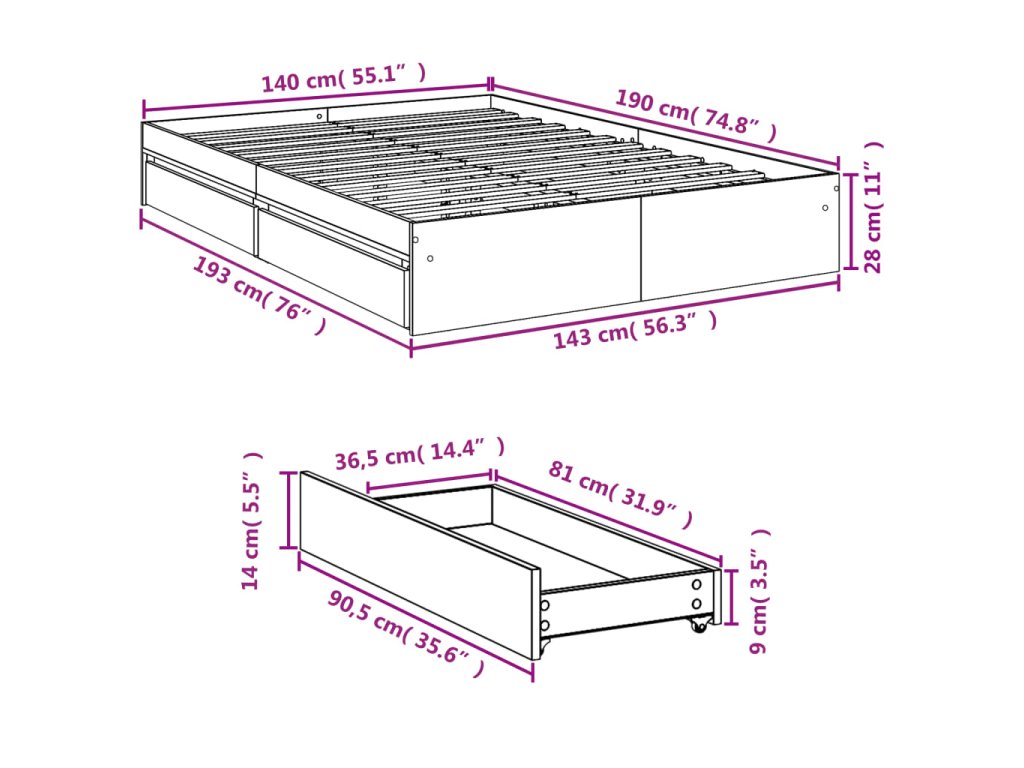 Rám postele se zásuvkami černý 140 x 190 cm kompozitní dřevo 3280686