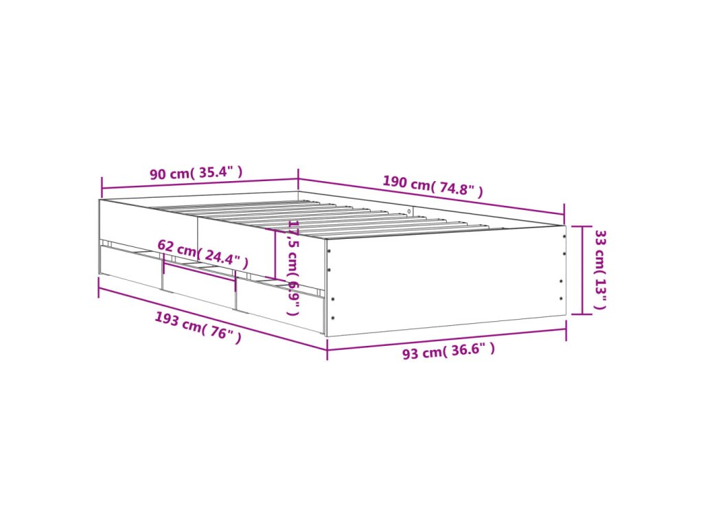 Rám postele se zásuvkami černý 90 x 190 cm kompozitní dřevo 3207323