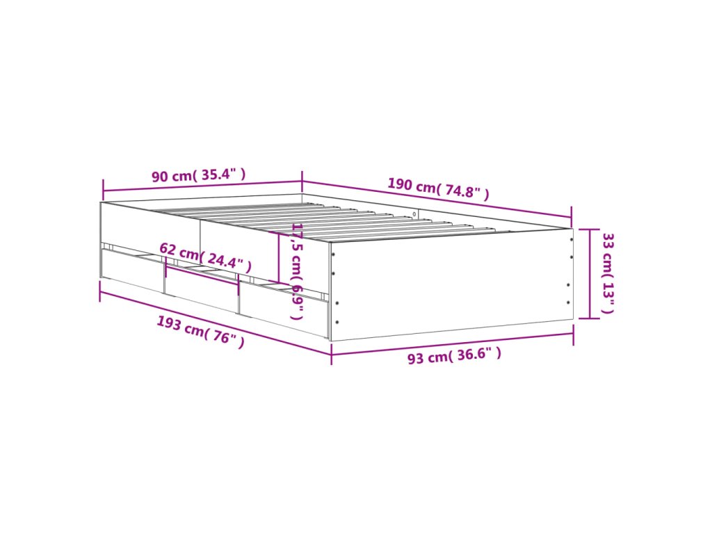 Rám postele se zásuvkami hnědý dub 90 x 190 cm kompozitní dřevo 3207328