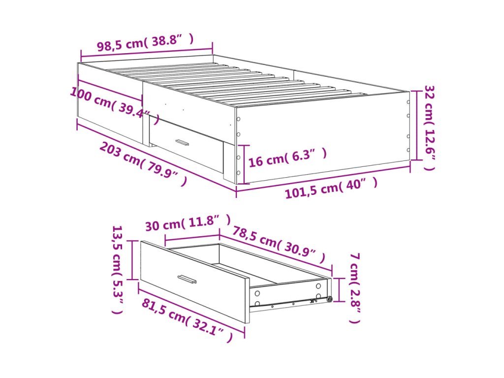 - Rozměry zásuvky postele (každá): 81,5 x 31,5 x 13,5 cm (D x Š x V)