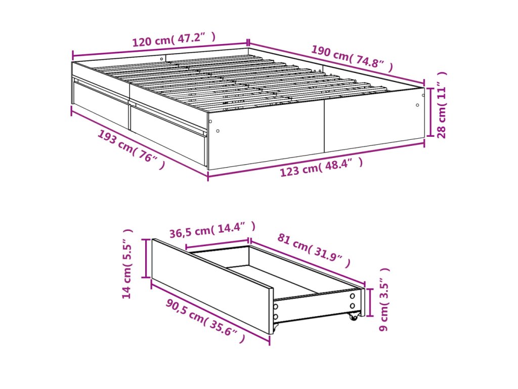 Rám postele se zásuvkami kouřový dub 120 x 190 cm kompozit 3280703