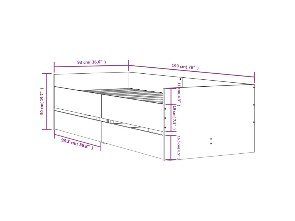 Rám postele se zásuvkami kouřový dub 90 x 190 cm 3207354
