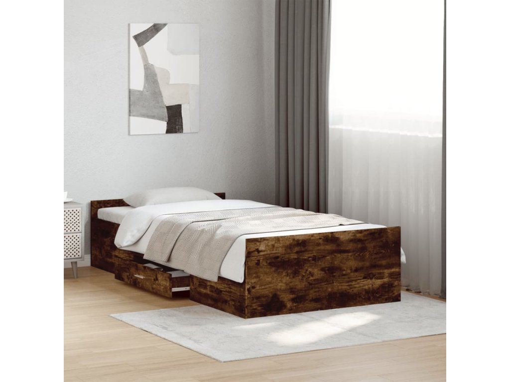 Rám postele se zásuvkami kouřový dub 90x190 cm kompozitní dřevo 3280346