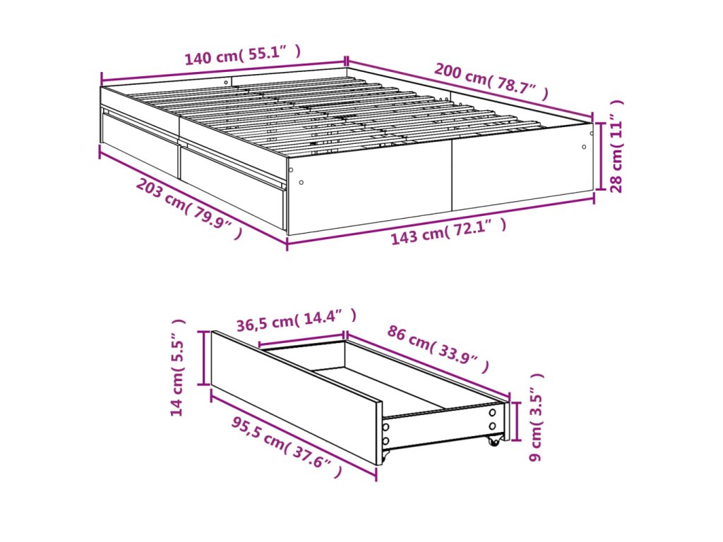 Rám postele se zásuvkami šedý sonoma 140 x 200 cm kompozit 3280662