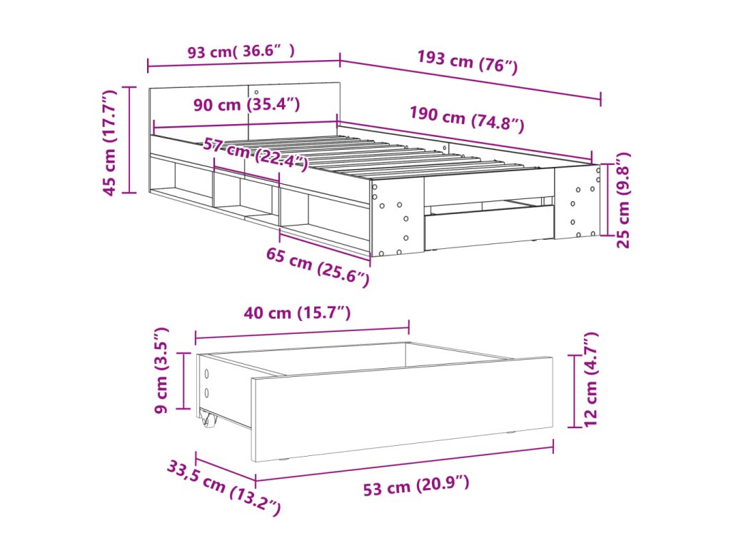 Rám postele se zásuvkou černý 90 x 190 cm kompozitní dřevo 3280784