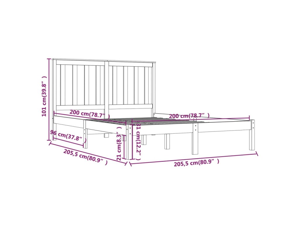 - Rozměry rámu postele: 205,5 x 205,5 x 31 cm (D x Š x V)