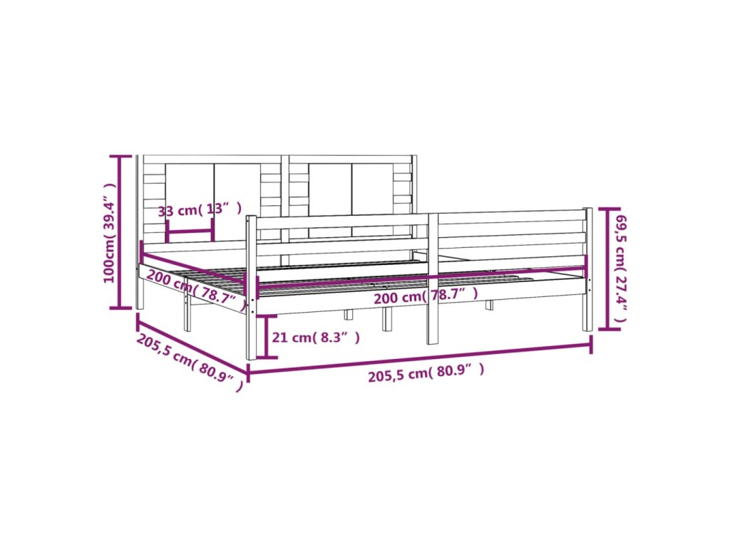 - Rozměry čela postele: 205,5 x 4 x 100 cm (Š x H x V)