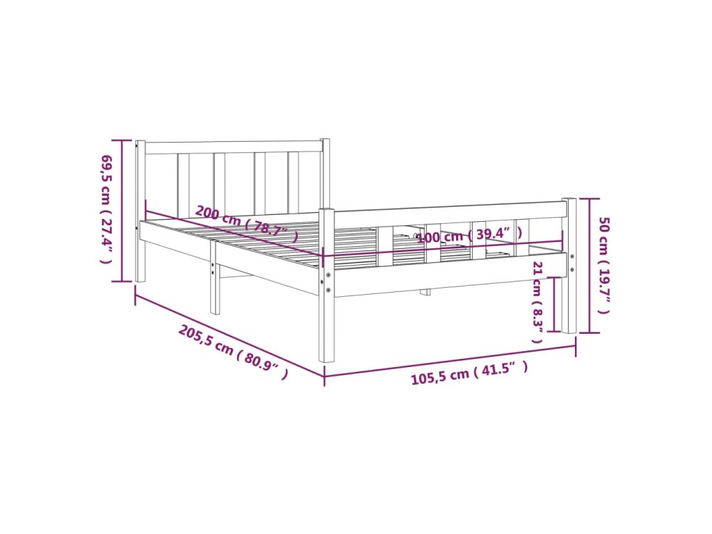 - Rozměry rámu postele: 205,5 x 105,5 x 69,5 cm (D x Š x V)