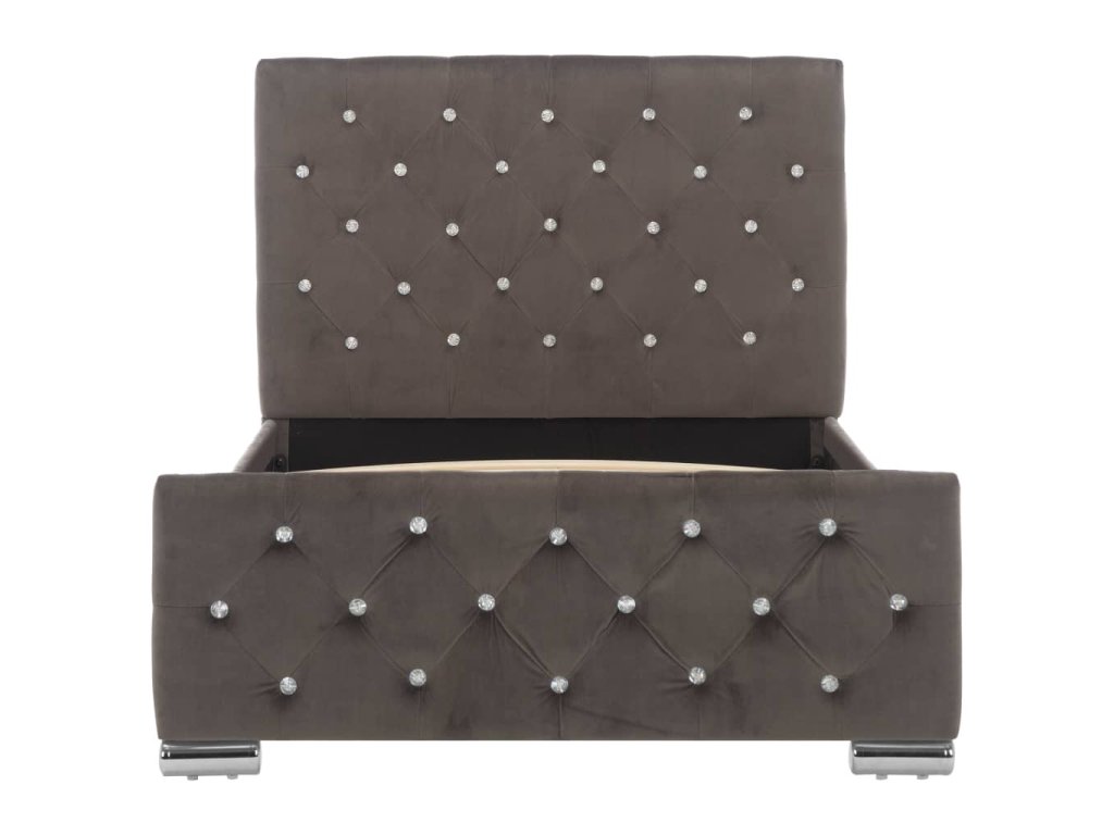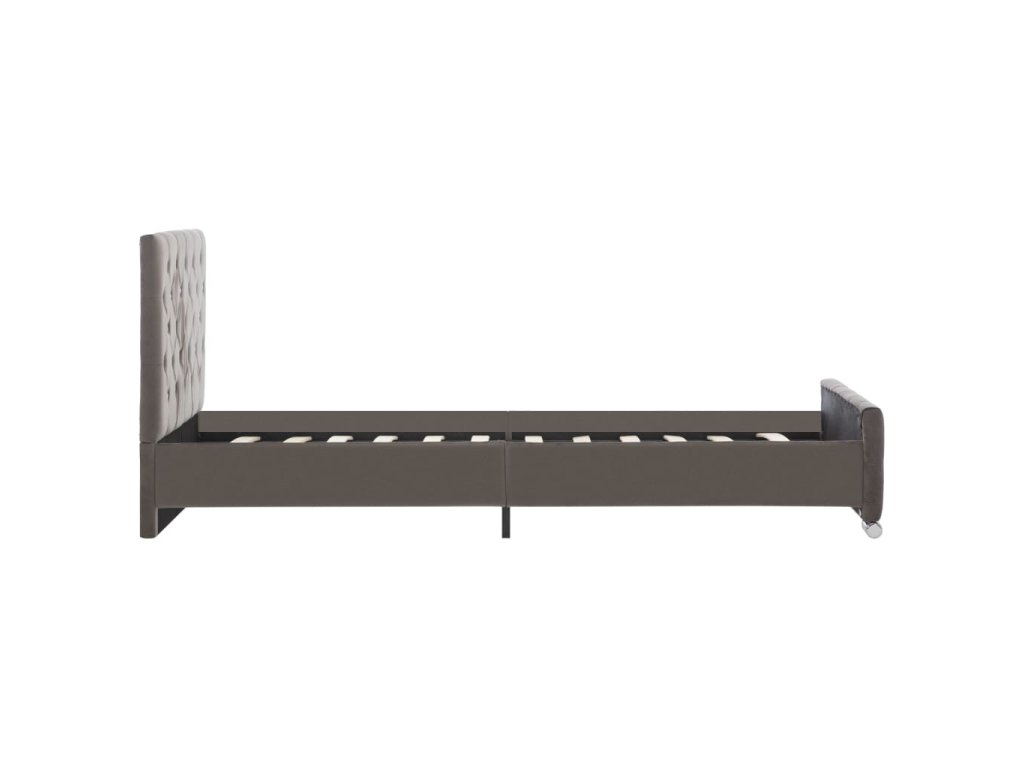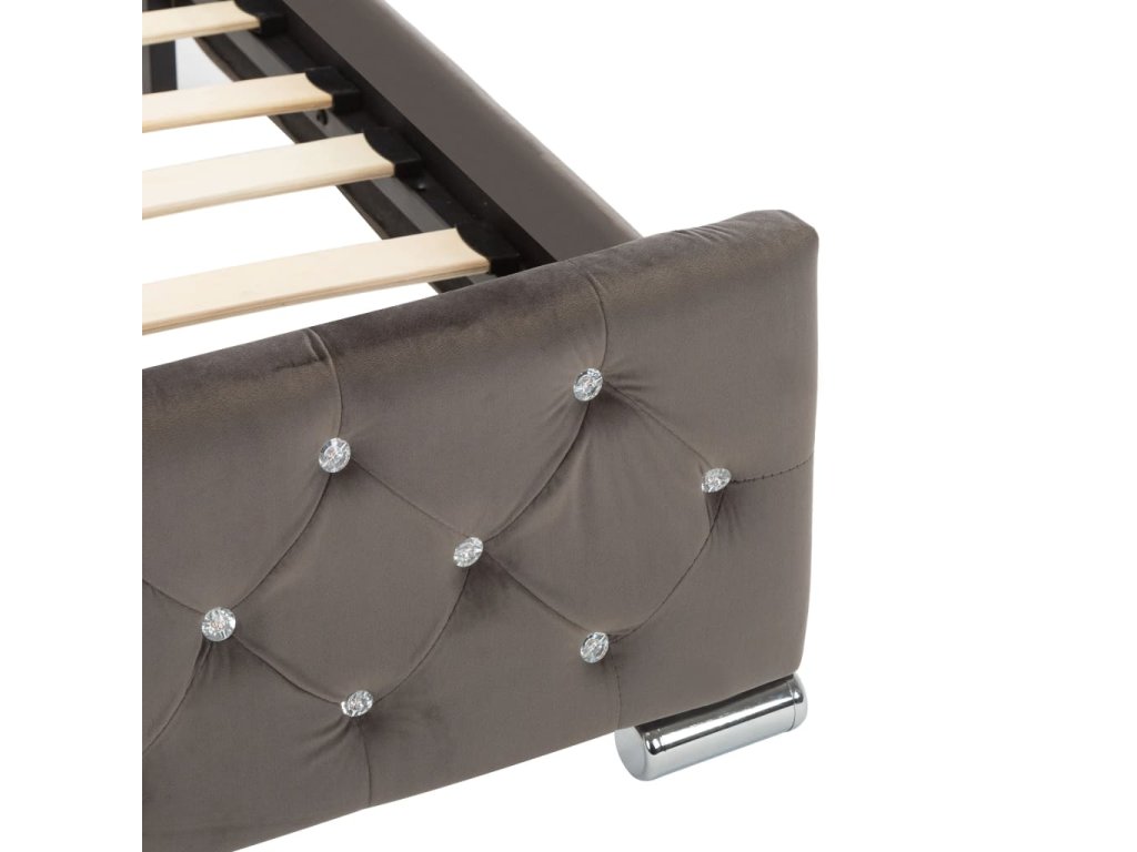 Rám postele se vyznačuje nenápadným, a přitom půvabným designem, který do vaší ložnice vnese elegantní šarm. Rám postele je vyrobený ze dřeva a oceli, je tedy mimořádně pevný a má dlouhou životnost. Kovové nohy přidávají posteli na odolnosti. Postelový rám je navíc čalouněný odolným sametem, vyloženě tedy svádí k odpočinku a snadno se čistí. Tento rám postele je vhodný pro matrace o rozměrech 90 x 200 cm.