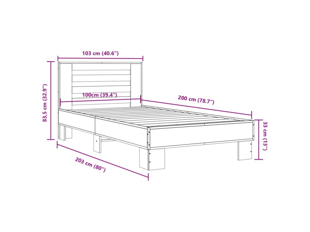 Rám postele šedý sonoma 100 x 200 cm kompozitní dřevo a kov 845650