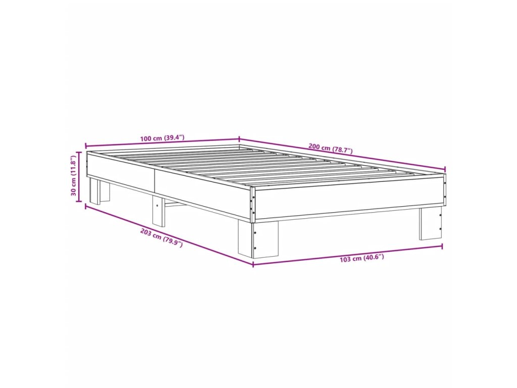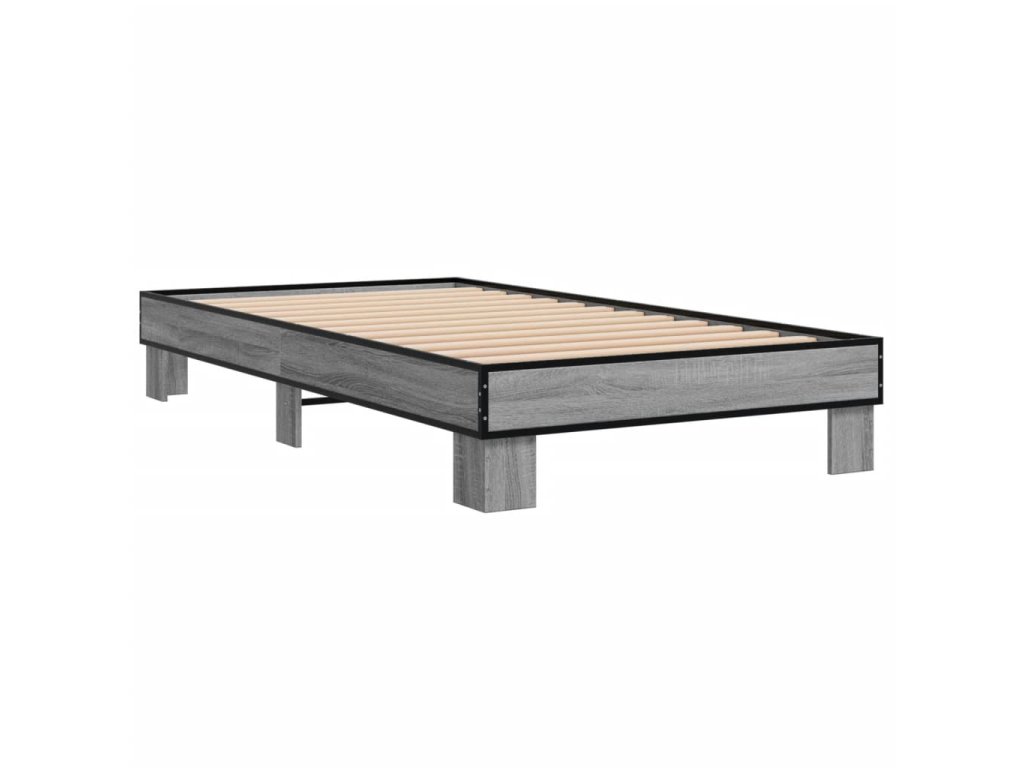 Rám postele šedý sonoma 100 x 200 cm kompozitní dřevo a kov 845870
