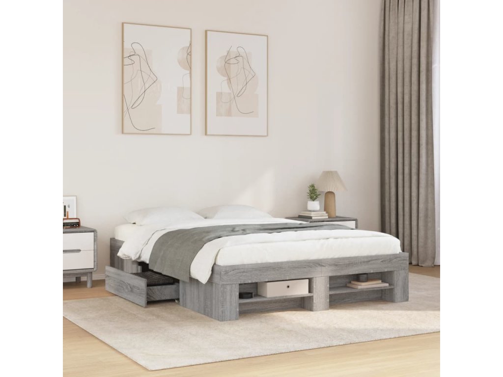 Rám postele šedý sonoma 120 x 200 cm kompozitní dřevo 3295483