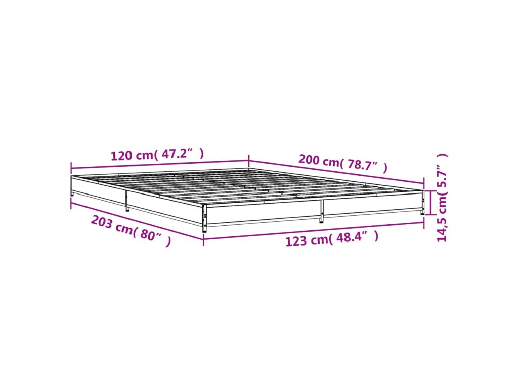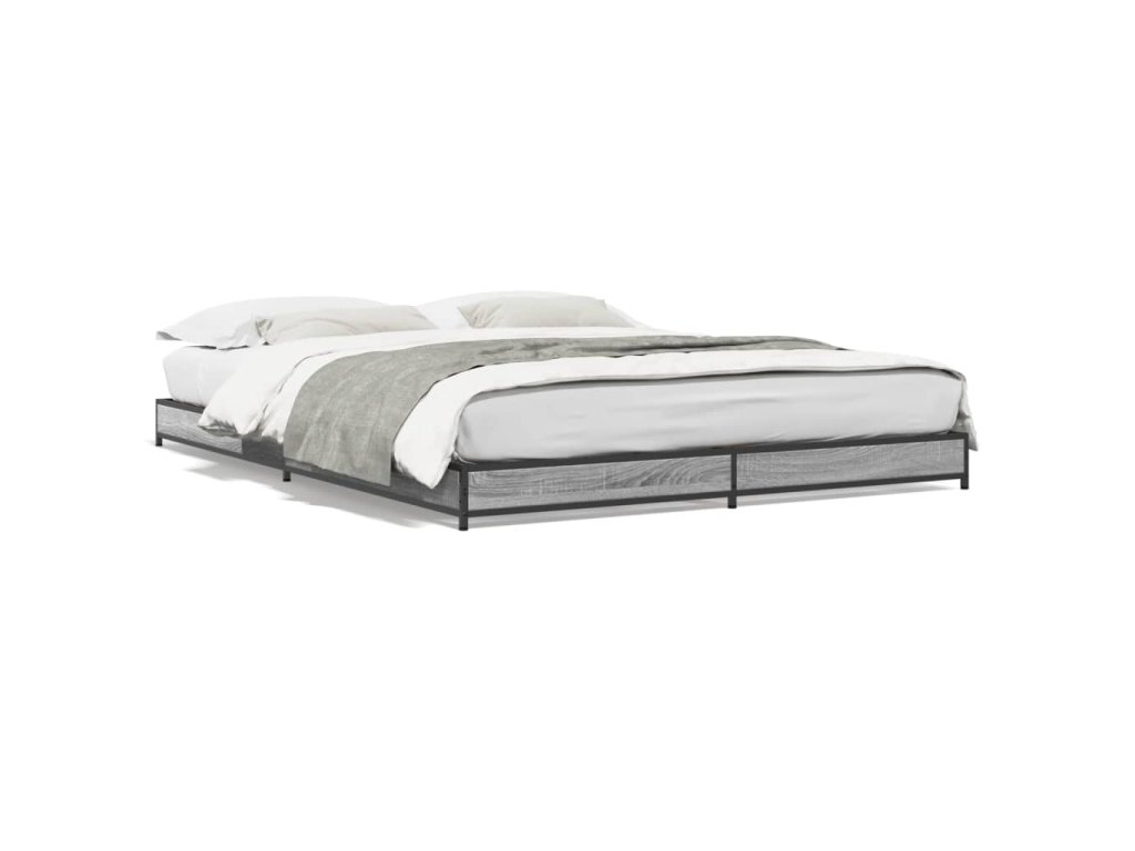 Rám postele šedý sonoma 120 x 200 cm kompozitní dřevo a kov 845154
