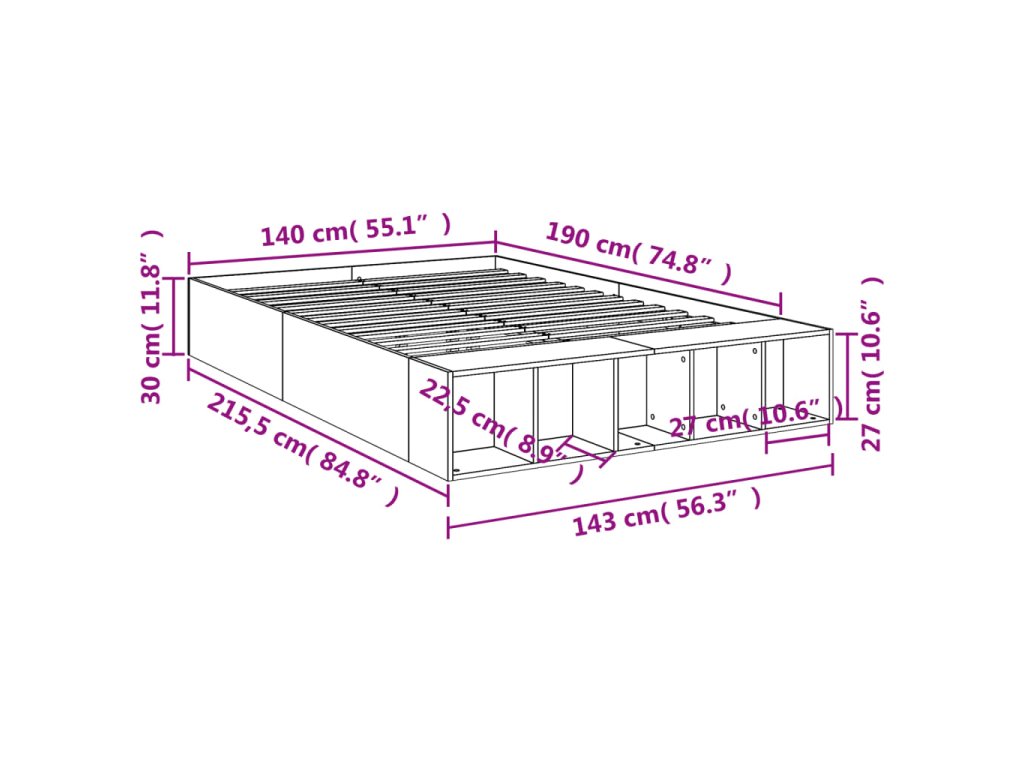 Rám postele šedý sonoma 140 x 190 cm kompozitní dřevo 3280585