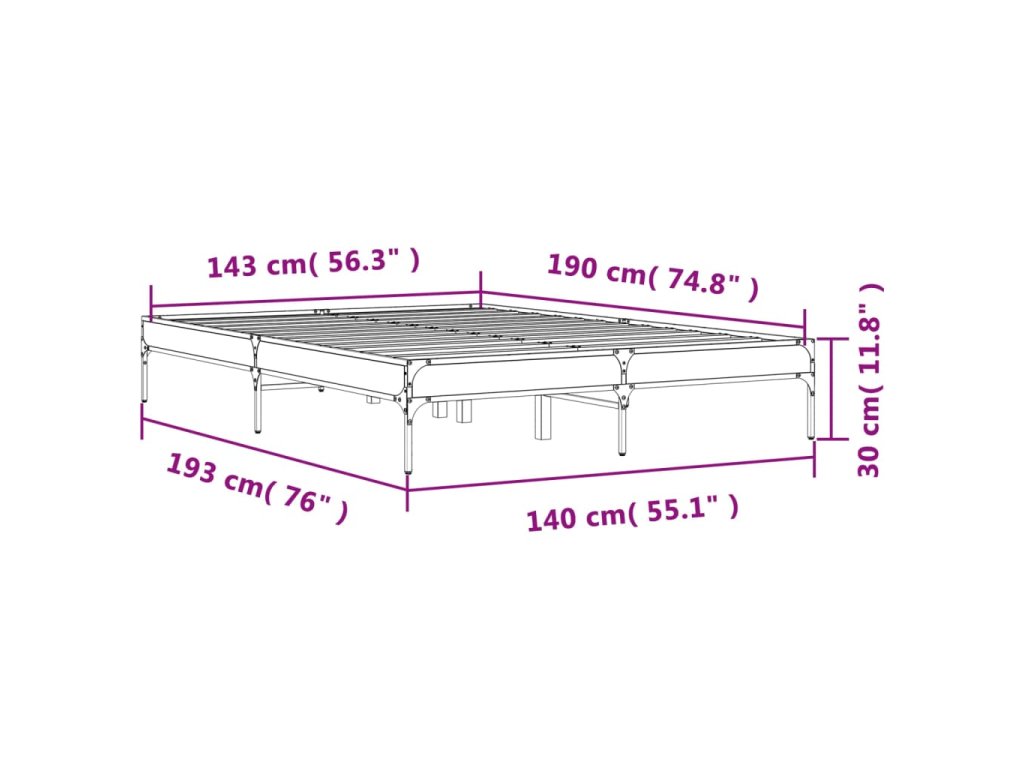 Rám postele šedý sonoma 140 x 190 cm kompozitní dřevo a kov 845039