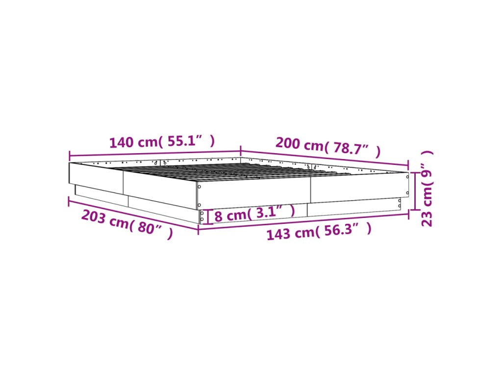 Rám postele šedý sonoma 140 x 200 cm kompozitní dřevo 3209861