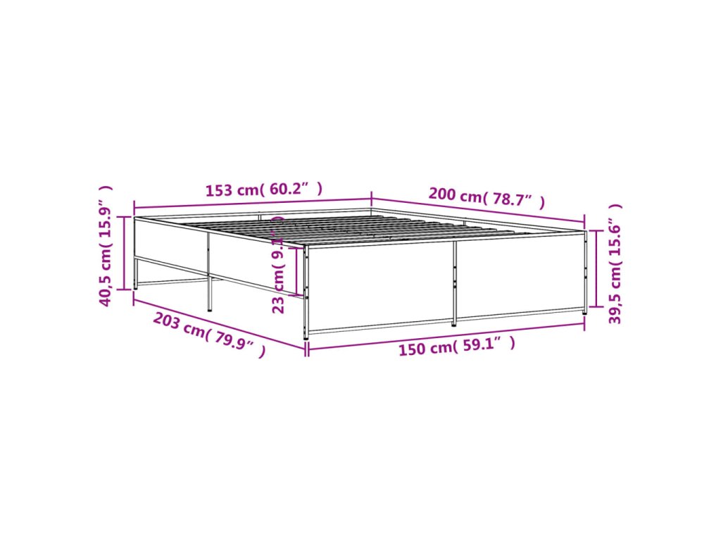 Rám postele šedý sonoma 150 x 200 cm kompozitní dřevo a kov 3279885