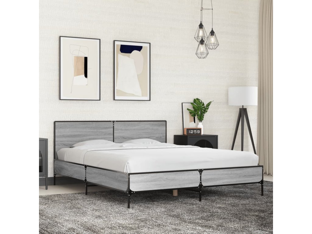 Rám postele šedý sonoma 150 x 200 cm kompozitní dřevo a kov 3280005