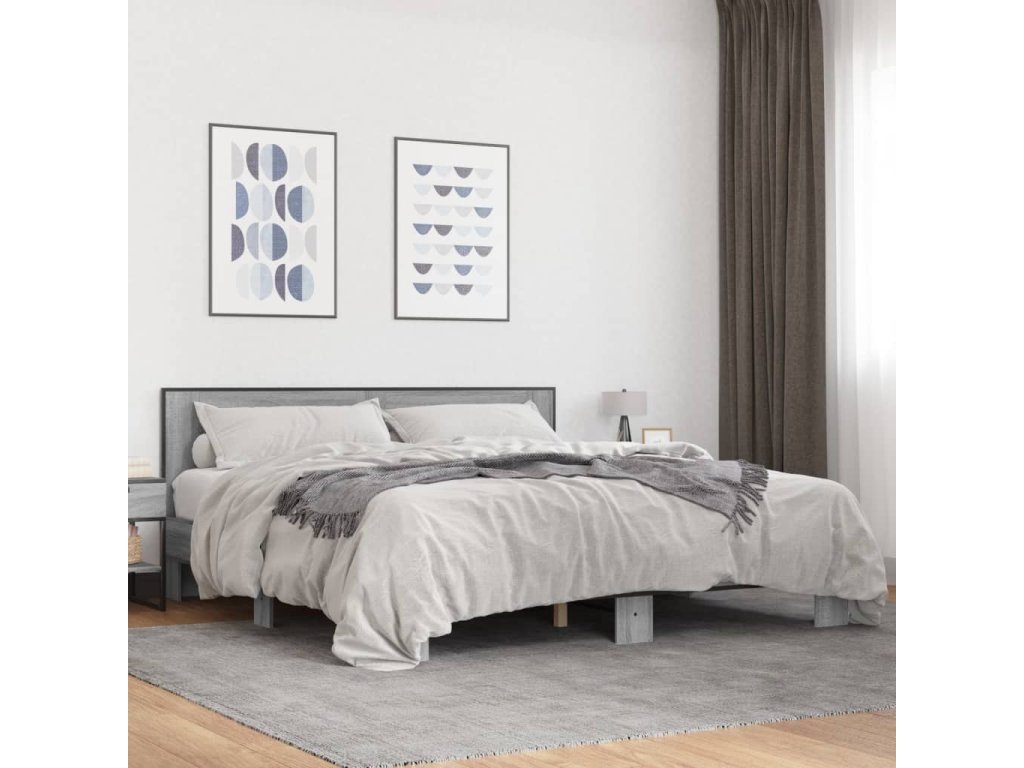 Rám postele šedý sonoma 200 x 200 cm kompozitní dřevo a kov 3280085