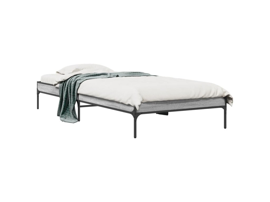 Rám postele šedý sonoma 90 x 190 cm kompozitní dřevo a kov 845054