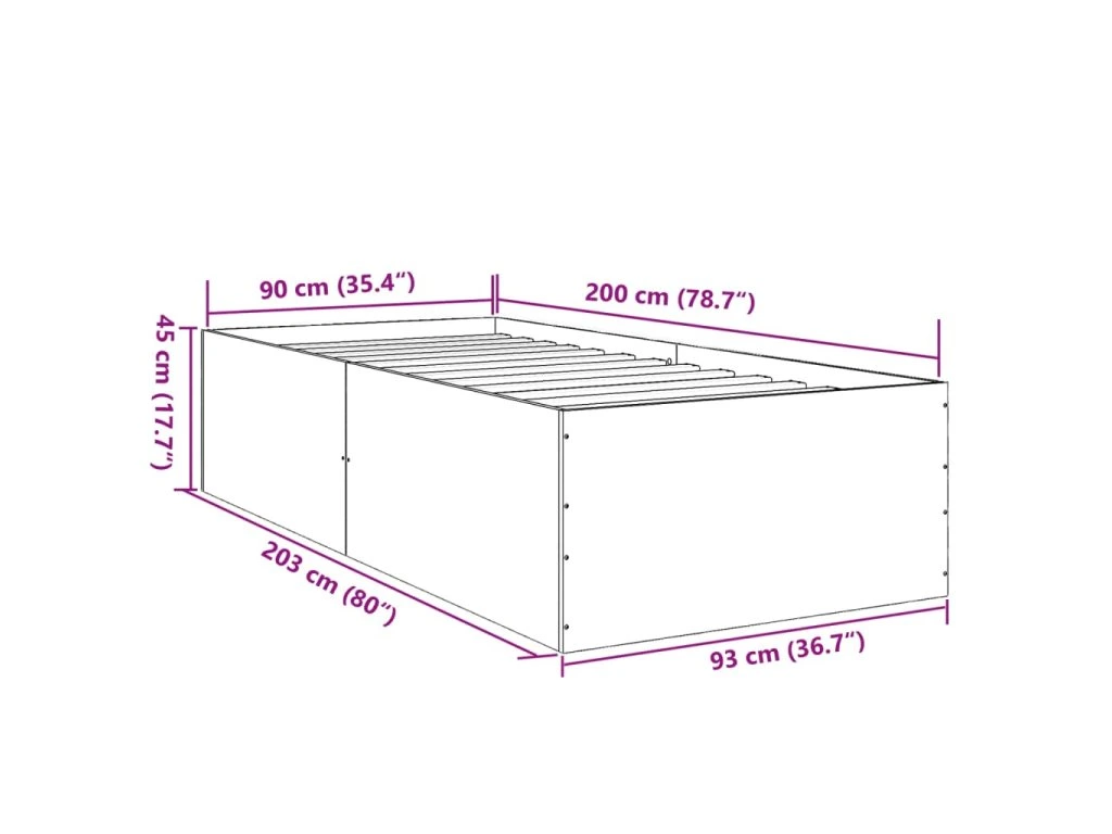 Rám postele šedý sonoma 90 x 200 cm kompozitní dřevo 3280970