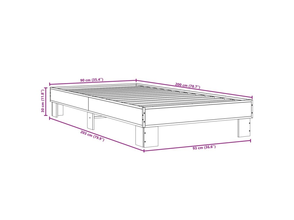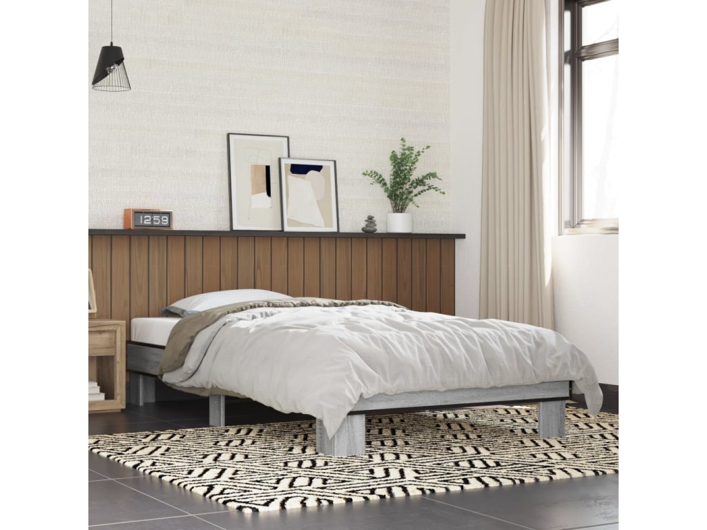 Rám postele šedý sonoma 90 x 200 cm kompozitní dřevo a kov 845875