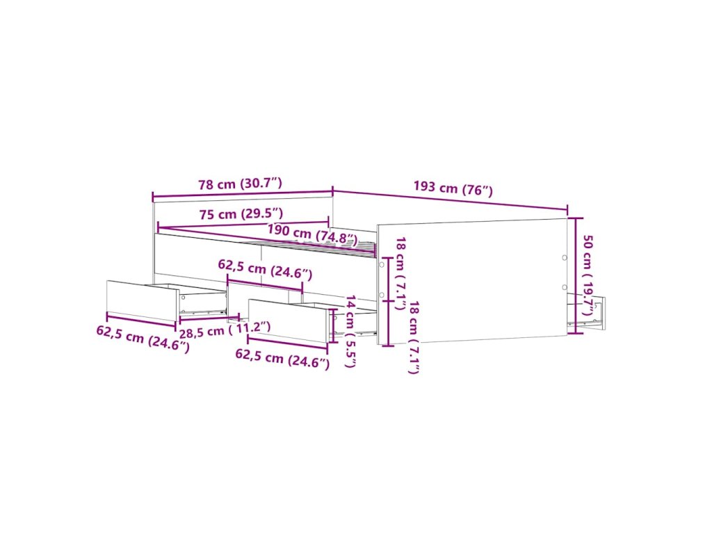 - Celkové rozměry: 193 x 78 x 50 cm (D x Š x V)