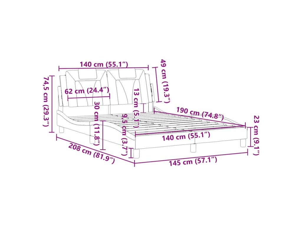 - Vhodná velikost matrace: 140 x 190 cm (Š x D) (matrace není součástí balení)