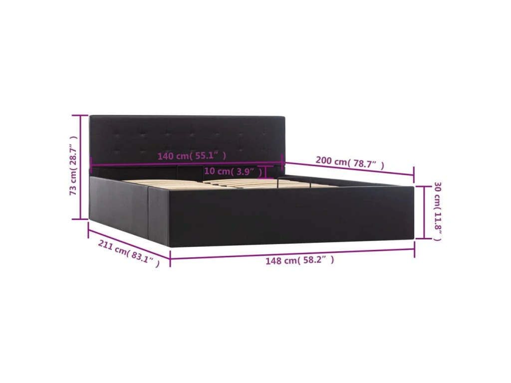 Rám postele zvedací úložný prostor černý umělá kůže 140x200 cm 285513