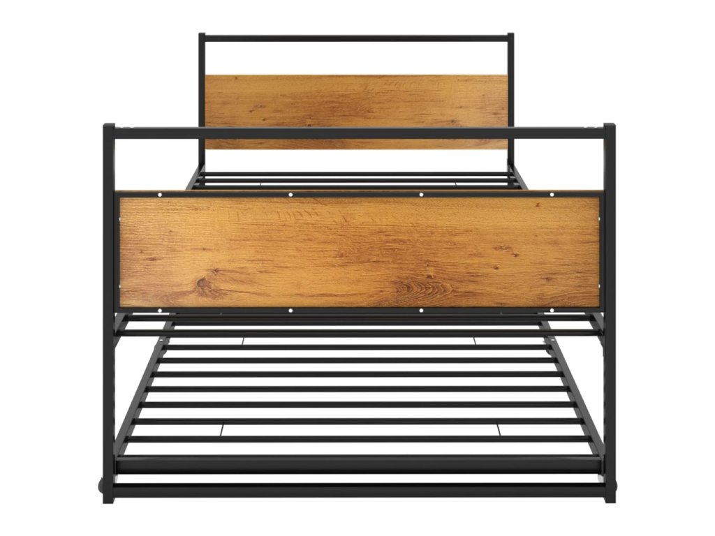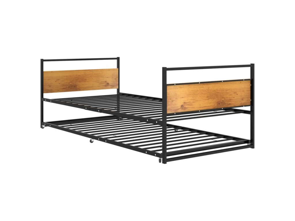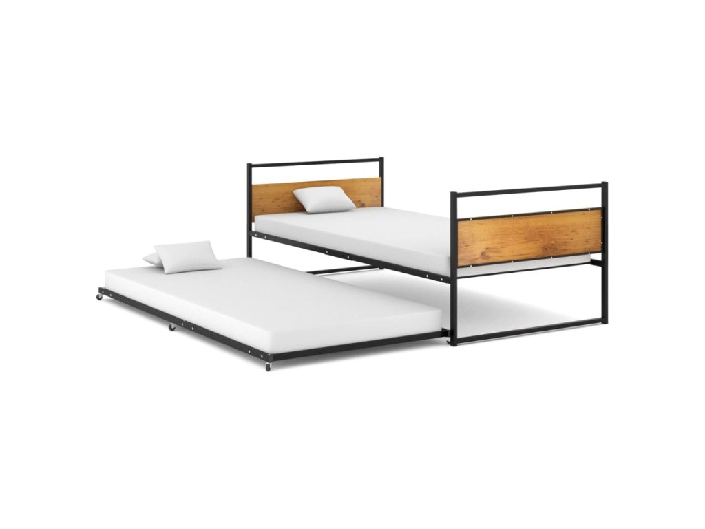 Vysuvné spodní lůžko je vybaveno 6 plastovými kolečky a lze jej snadno skrýt, když se nepoužívá. Tento kovový rám postele maximalizuje dostupnou podlahovou plochu a zároveň poskytuje prostor pro dvě osoby, což z něj činí ideální volbu pro lidi s omezeným obytným prostorem. Postel má pevnou konstrukci z práškově lakovaného kovu a MDF, díky čemuž je mimořádně robustní a odolná. Robustní lamely poskytují potřebnou oporu a pohodlí. Na této posteli si můžete každou noc užít skvělý spánek!