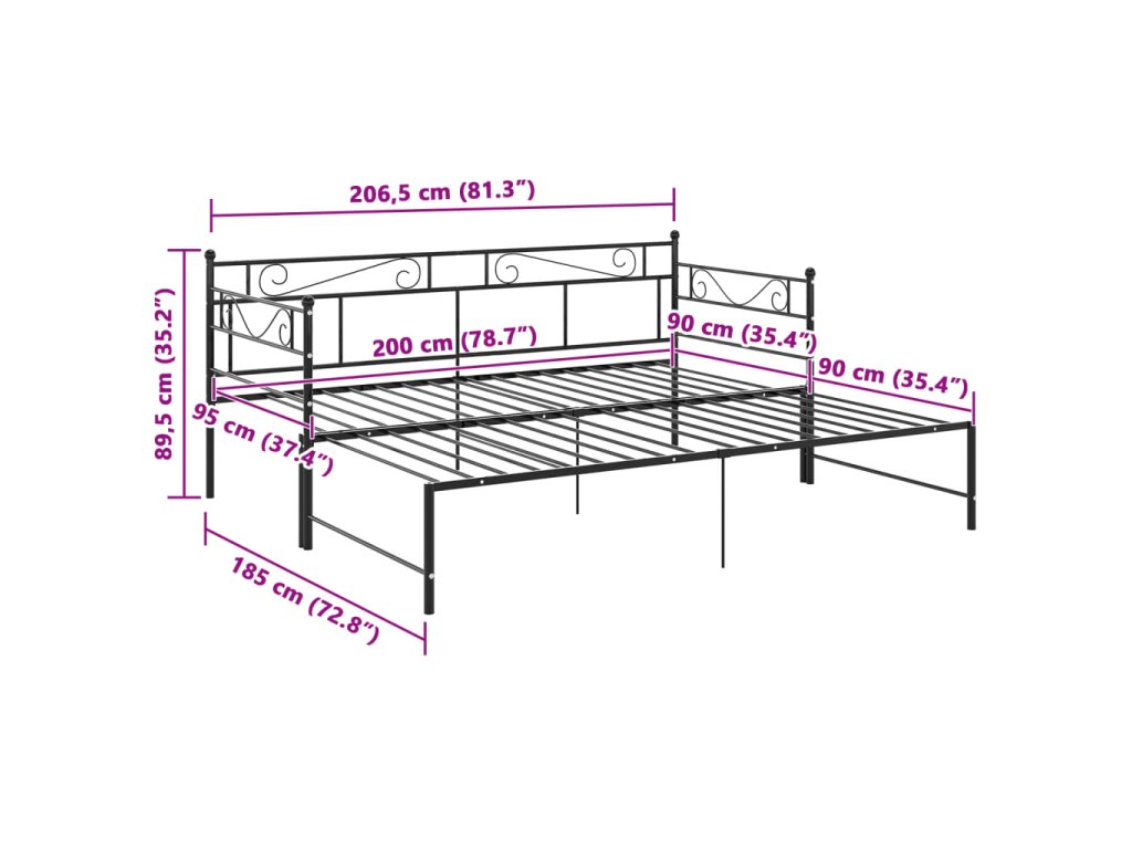 Rám vysouvací postele/pohovky černý kovový 90 x 200 cm 324770