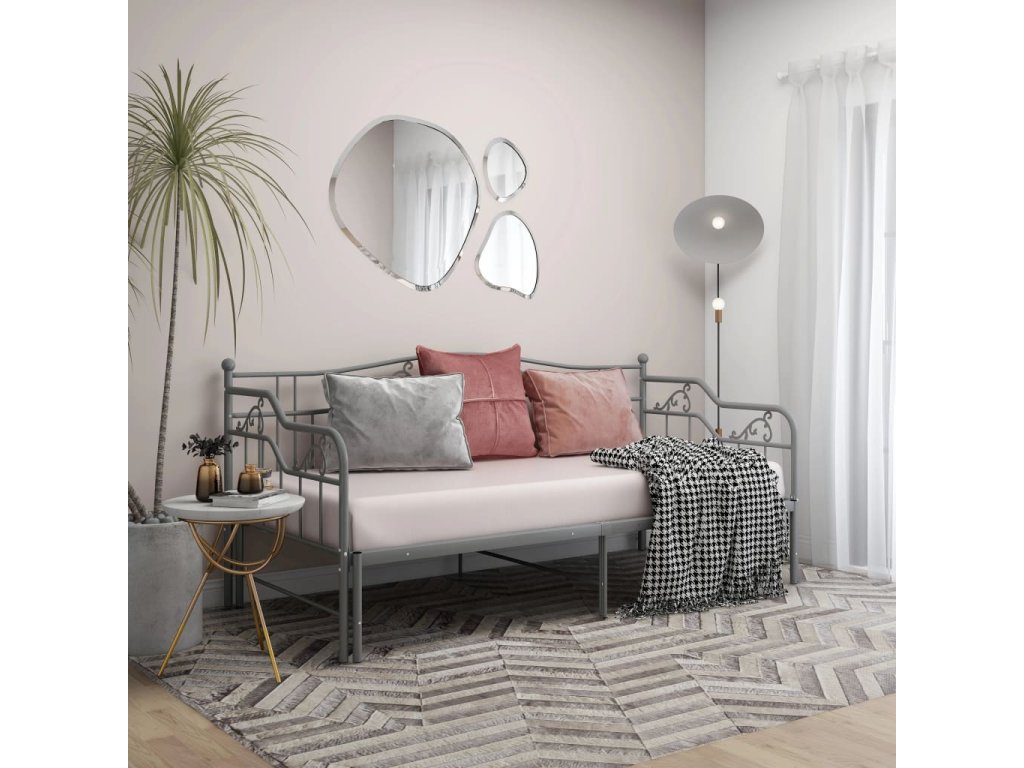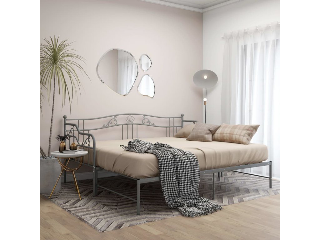 Rám vysouvací postele/pohovky šedý kovový 90 x 200 cm 324766