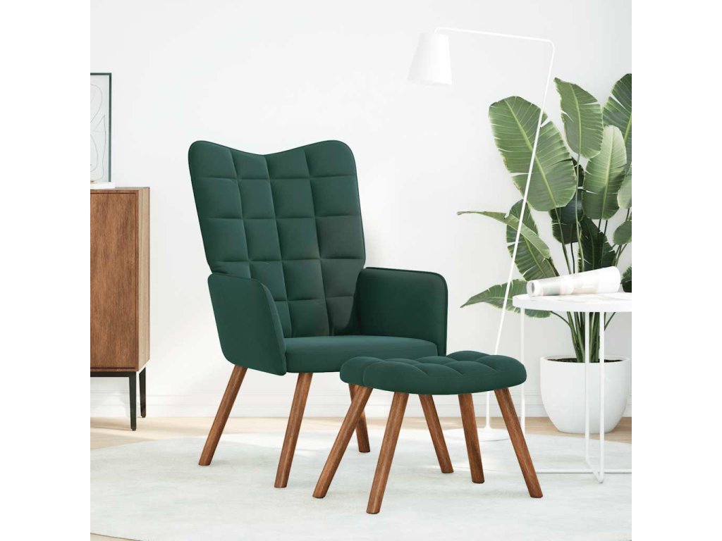 Relaxační křeslo s taburetkou tmavě zelené sametové 4016823