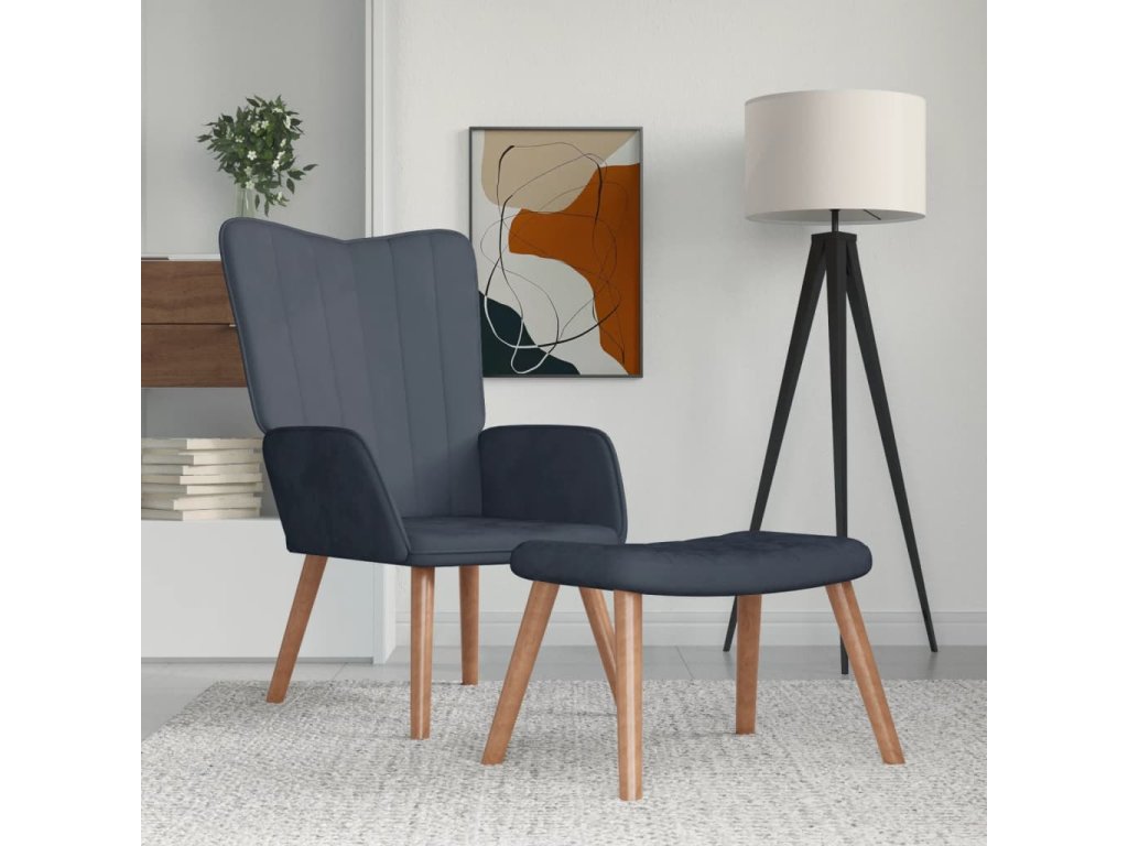 Relaxační křeslo se stoličkou tmavě šedé samet 327667