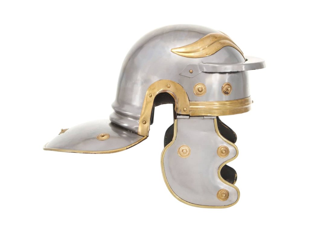 Tato přilba má autentický vzhled klasické římské helmy polokulatého tvaru vpředu s lícnicemi a vzadu protáhlé štítky na ochranu týlu. Je navržená s maximální účinností pro optimální ochranu hlavy vojáka.