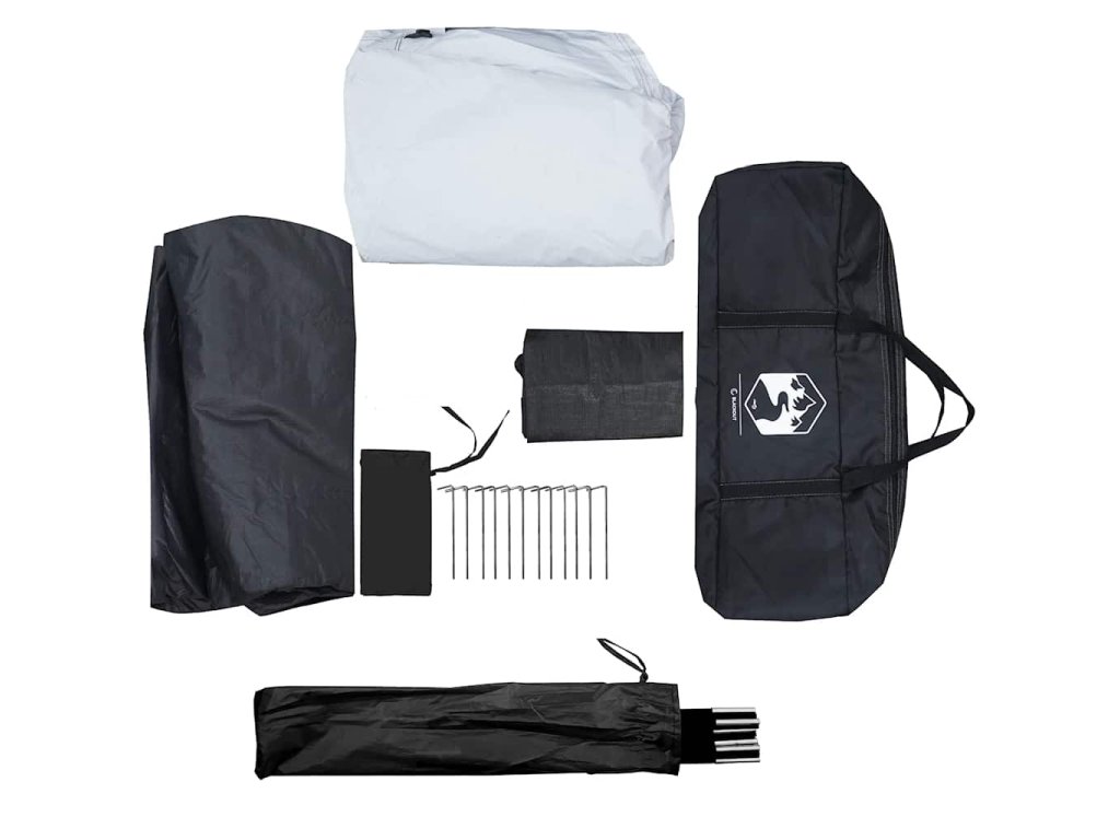- Komplexní vodotěsnost: Tento kempingový stan je vyroben z polyesteru s PU povlakem, je nepromokavý a odolný proti větru. Podlepené švy účinně zabraňují pronikání dešťové vody, zatímco odolná podlážka pomáhá udržovat suchý a příjemný interiér.