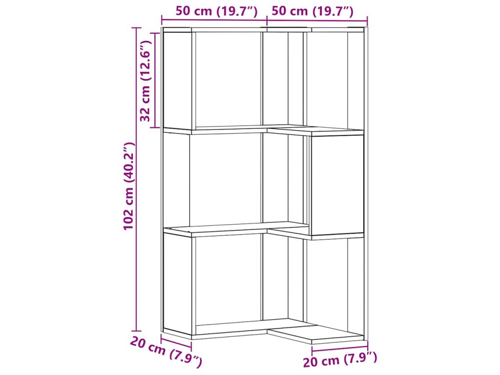 Rohová 3patrová knihovna dub artisan 50 x 50 x 102 cm kompozit 852599