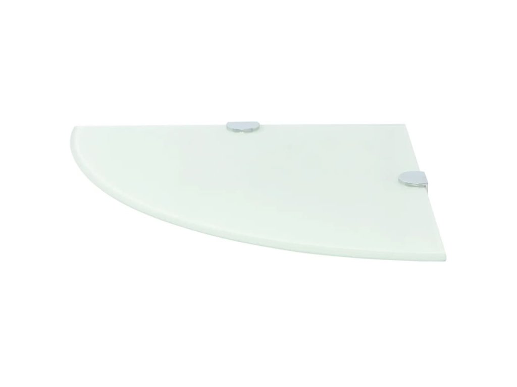 Rohové police 2 ks s chromovými podpěrami sklo bílé 25 x 25 cm 3051598